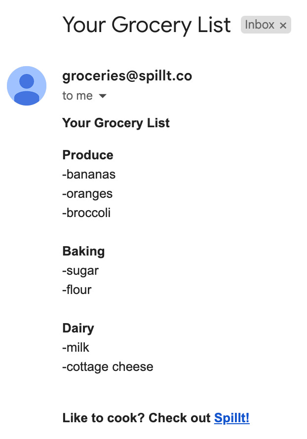 Our last step was hooking this up to Resend in order to send ourselves (or someone else!) a copy of the grocery list. This we setup using another Supabase Edge Function paired with the Resend email API.